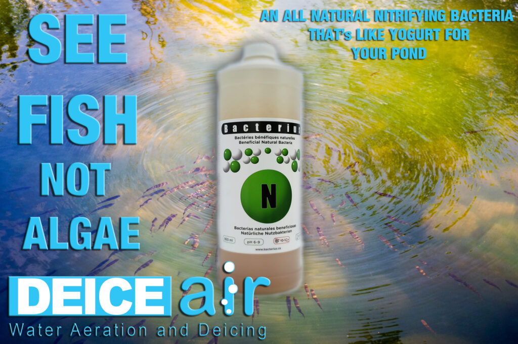 Because rainwater contains nitrogen, in multiple forms that plants are able to absorb, and plants need nitrogen to grow. Farmers have noticed that rainwater amplifies plant growth more so than water from other sources. Obviously that’s good, for farmers, as they don’t need to apply as much artificial fertilizer. However, for pond owners this same phenomenon sometimes throws off the equilibrium of their more “fragile” or closed ecosystem, especially in the case of some aquatic plants — typically algae — that may otherwise be limited by a lack of nitrogen, but now has enough extra nitrogen from the rainwater to out compete other organisms in the pond. Luckily for pond owners facing challenges Deiceair carries the best natural nitrifying bacteria conditioner Bacterius® N, a water treatment to help regulate nitrogen in your aquatic system and improve overall water quality and pond health. For more information contact Deiceair.ca today.