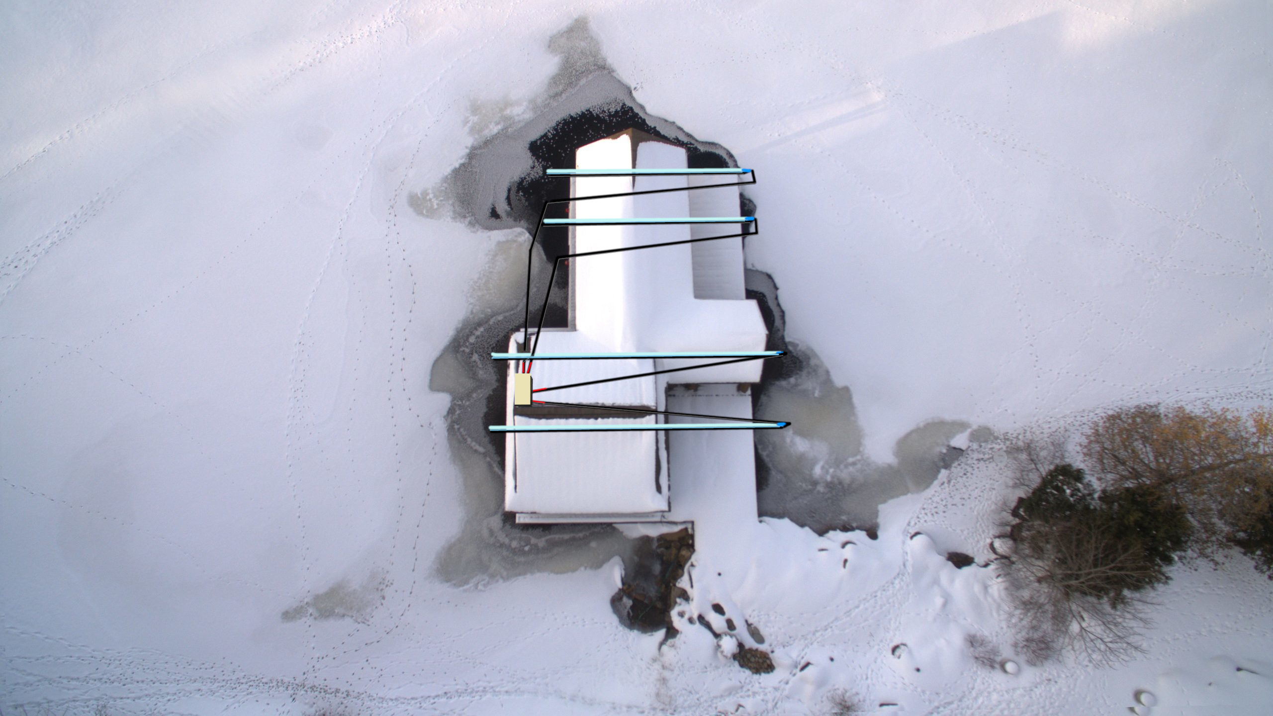 Deiceair designs each system around the topography of the bottom of the lake, and the structure requiring de-icing. Each system is designed to take a variety of conditions into mind. Where Thawline really shines is in the ability of multi-line-systems, to control open water over the widest range of depths (during influx and draw down situations) as well as temperatures.