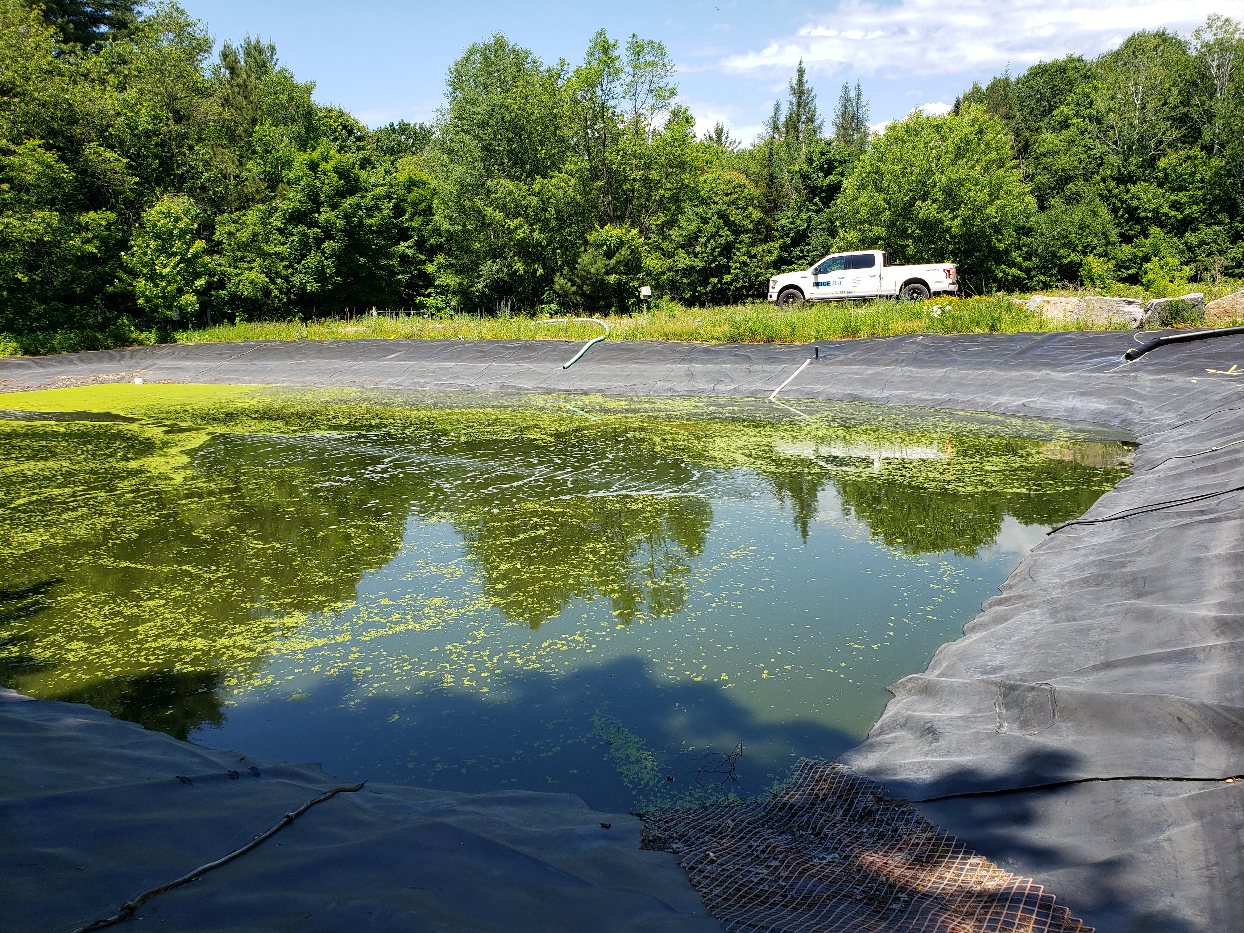 Below is a freshly installed Bubble Tubing® aeration system at a municipal waste water site in Ontario. This system is low cost, installed by two techs quickly. With no moving parts in the water, Bubble Tubing® immediately starts adding Oxygen to the lagoon, lowering BOD, and helps to keep retention times on schedule. Micro bubbles are far more effective than coarse bubbles and require less energy to produce. Our high efficiency compressors are selected based on the scale of the project and matched to the diameter of the tubing required.